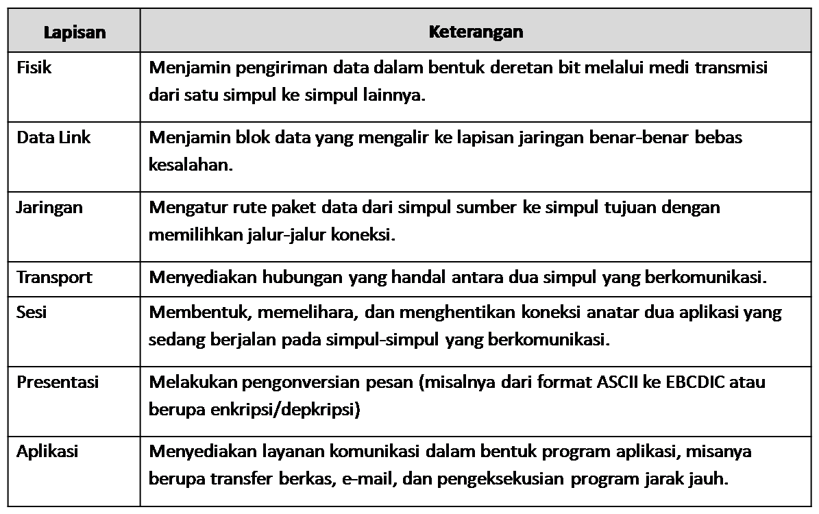 pertukaran data antara dua sistem dalam jaringan. Standar protokol yang terkenal adalah OSI (Open System
